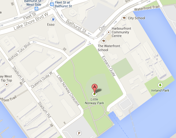 Little Norway Park just WEST of the Harbourfront Community Centre-