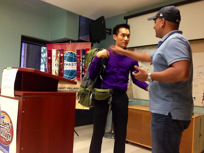Atif continued Mark’s theme of exploration with his speech about his backpacking adventures through 1st and 3rd world countries — which included living in India for $20 a day. Finally, James led a tightly-orchestrated Table Topics in which he proved that it’s possible for everyone to participate not once, but twice!