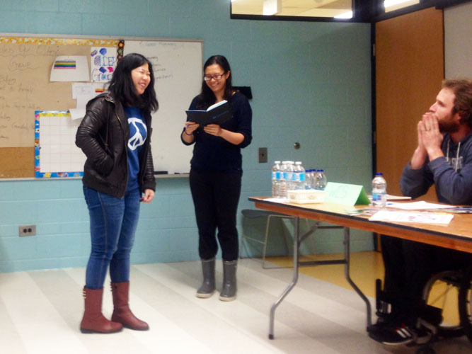 Maxim tricked us with his three “Rules of Happiness”, putting an inspirational spin on our problems, posture, and fears, while James’ workshop on hosting a meeting was surely a treat — just ask Maxim, who wore a Toastmaster’s costume as he re-enacted the role’s main tasks.