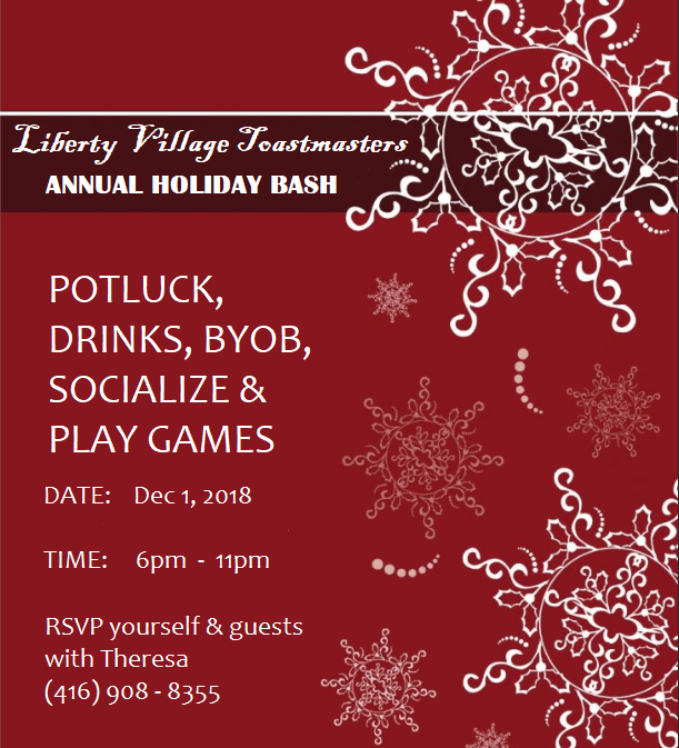 This year we are having a Potluck! Please RSVP with Theresa (theresa.pinter @ gmail.com) or call (416) 908 – 8355. You will receive an email to sign-up and let us know what tasty delights you will be bringing.