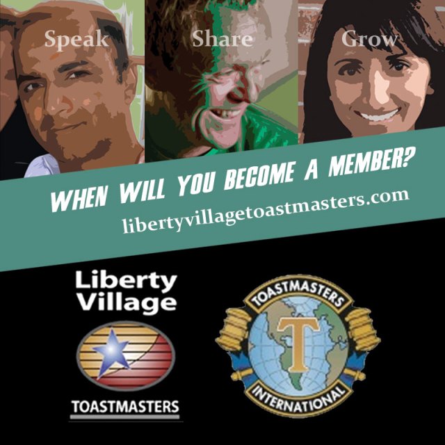Made your New Year’s resolution yet? Why not challenge yourself to speak, share, and grow as a public speaker by becoming a member of Liberty Village Toastmasters!
